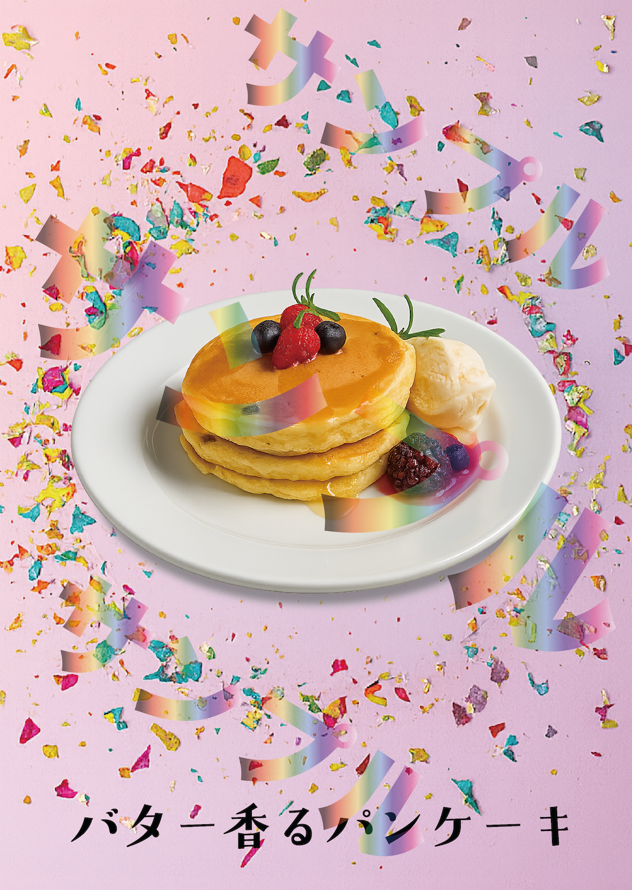 ピンクの背景に舞う華やかな紙