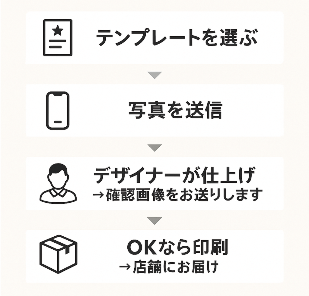 最短でその日から使える販促素材をお届けします。